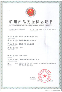 喜訊:我公司申請的高級別礦用整芯阻燃輸送帶已取得安全生產(chǎn)標志!